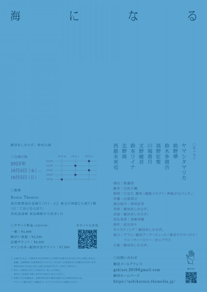 鈴野華が劇団あしからず。「海になる」出演いたします。